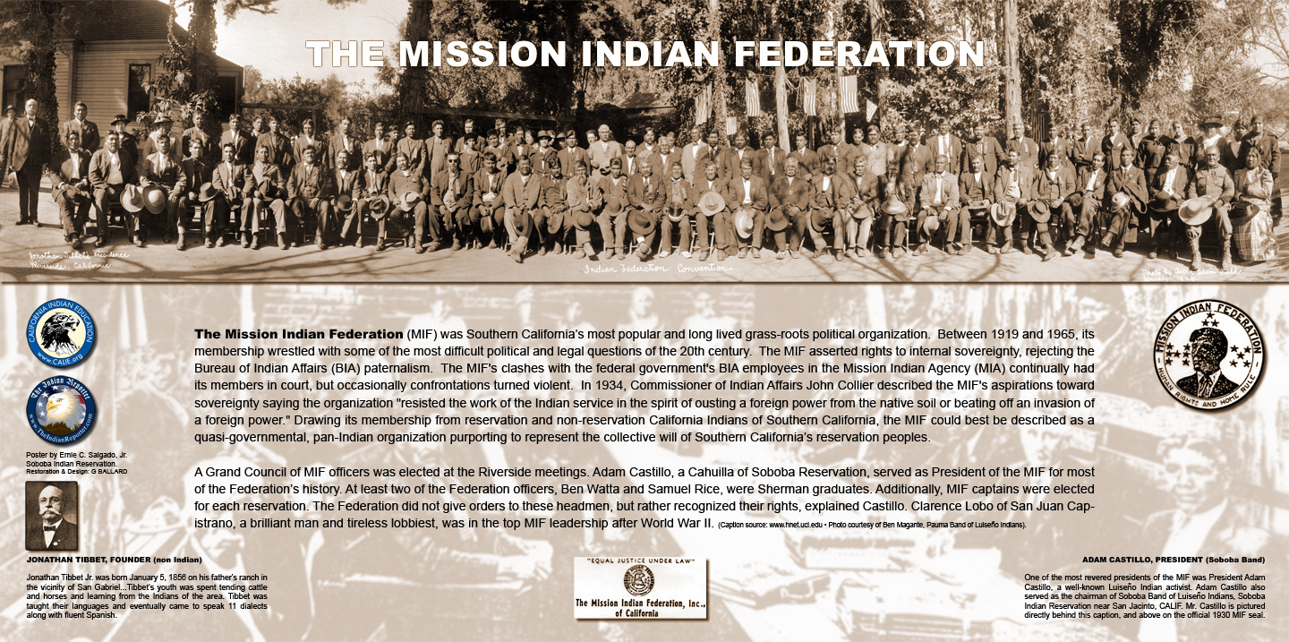 DOWNLOAD HIGH RESOLUTION POSTER MISSION INDIAN FEDERATION 1920 historical photo by Avery Edwin Field, courtesy of Ben Magante, Pauma Yuima Band of Mission Indians, photo by Avery Edwin Field. Original CALIE MIF poster 24x48".