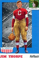 Jacobus Franciscus "Jim" Thorpe (1887-1953). Born May 28, 1887, near Prague, Oklahoma. Tribal: Sac & Fox mother, Sac & Fox Nation, Oklahoma. Raised in Sac & Fox community. Indian Name: Wa-Tho-Huck (Bright Path) Education:Carlisle Industrial School, Pennsylvania. Nicknames: "World's Greatest Athlete". Sports: Baseball, Basketball, Football, Track & Field. Pro Football Hall of Fame: Inducted 1963. National Footbal League: